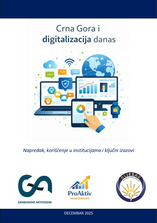 Dokument je izrađen u okviru projektnih aktivnosti projekta „Zajedno za aktivno građanstvo i digitalnu inkluziju“, koji je realizovan uz podršku donatorske mreže i u partnerstvu NVU Građanski aktivizam, NVU ProAktiv Montenegro i NVU Bljesak.
